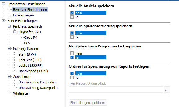 Ist die Option auf "ja" gesetzt kann ein Verzeichnis gewählt werden in welches die Reports automatisch gespeichert werden.