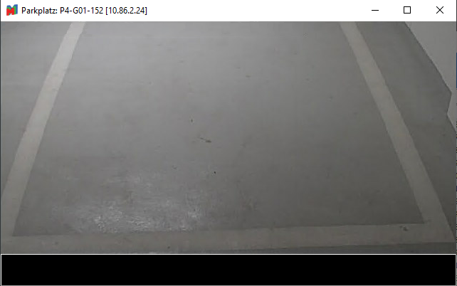 Mit einem Doppelklick auf einen Datensatz in der Listenansicht oder einen Parkplatz in der Grafik öffnet sich ein Bild des letzten Wechsels eines Parkplatzes. Dieses Bild entspricht dem konfigurierten Ausschnitt eines entsprechenden Sensors. In eckigen Klammern wird zusätzlich zum Parkplatznamen die IP Adresse des betreffenden Sensors angezeigt.