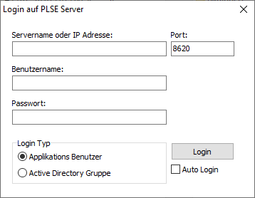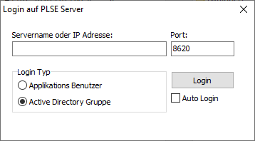 - Servername oder IP Adresse: Verbindung zum PLSE Server.