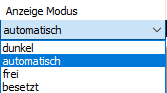 Mit einem Klick in das Feld Anzeigemodus öffnet sich ein Drop-Down Menu mit der möglichen Auswahl: