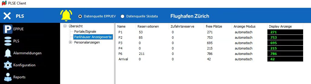 Hier sind alle angeschlossenen Parkhäuser in Listenform zu sehen.