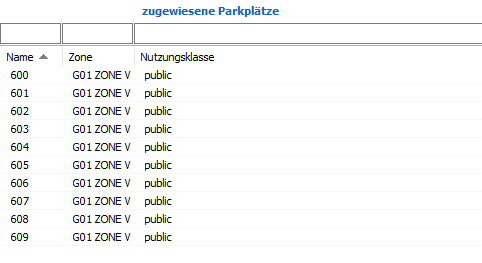 Anschliessend sind diese im Feld "zugewiesene Parkplätze" zu sehen.