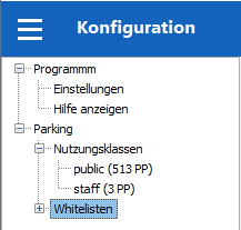 Liste aller Parkplätze welchen das Kennzeichen einer oder mehrerer Whitelisten zugewiesen ist. |